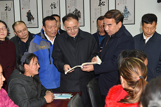 在和田縣英艾日克鄉(xiāng),依米西力克村工作隊與老百姓已打成一片,除了幫扶老百姓過好生活,還做起老師,教村民學漢語。一位參加夜校學習的婦女說:“能學到知識,我們很高興?!痹谕欣锔苫?,工作隊告訴馬軍勝,村里產(chǎn)業(yè)多,人均年收入近7000元,家家戶戶通了自來水,農(nóng)民就近打工,摘棉花、剪紅棗枝,增加了收入。在巴什闊尕其村,工作隊負責人介紹,村里通過養(yǎng)魚等產(chǎn)業(yè)每年收入5萬元?!半p11”前通過郵政電商收購核桃,幫助銷售,給農(nóng)民帶來了動力和希望。在和田縣吾宗肖鄉(xiāng)依干里克村,工作隊每周一召集村民升國旗,并利用郵政寄遞網(wǎng)絡(luò)將紅棗等農(nóng)產(chǎn)品銷售到全國各地。在阿克蘇托魯克鄉(xiāng)色日克蘇村,一名郵政管理部門工作隊員駐村時懷孕八個月,生下孩子后又帶著孩子駐村。馬軍勝對工作隊取得的成效給予充分肯定,強調(diào)要堅守崗位,把自治區(qū)黨委交給的任務辦實辦好,抓住“墩墩苗”的機會,踐行黨的群眾路線;要加強基層黨組織建設(shè),增強村集體的凝聚力;要挖掘當?shù)貎?yōu)勢特色農(nóng)產(chǎn)品,擴大農(nóng)產(chǎn)品銷售渠道;要積極培育引進返鄉(xiāng)創(chuàng)業(yè)人才,為老百姓干實事謀福利。