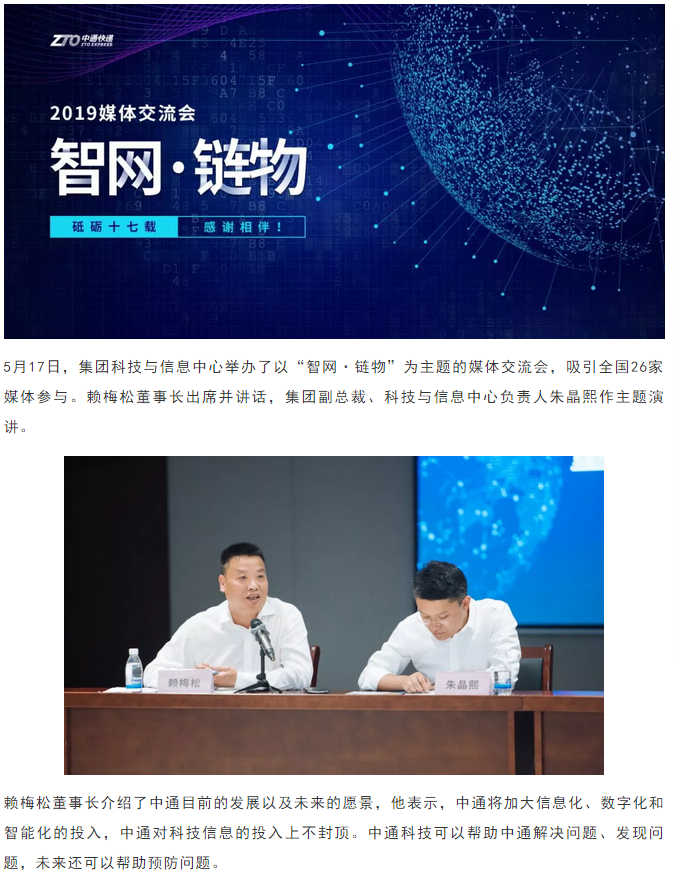 - 中通集團(tuán)科技與信息中心舉辦“智網(wǎng)·鏈物”媒體交流會(huì)