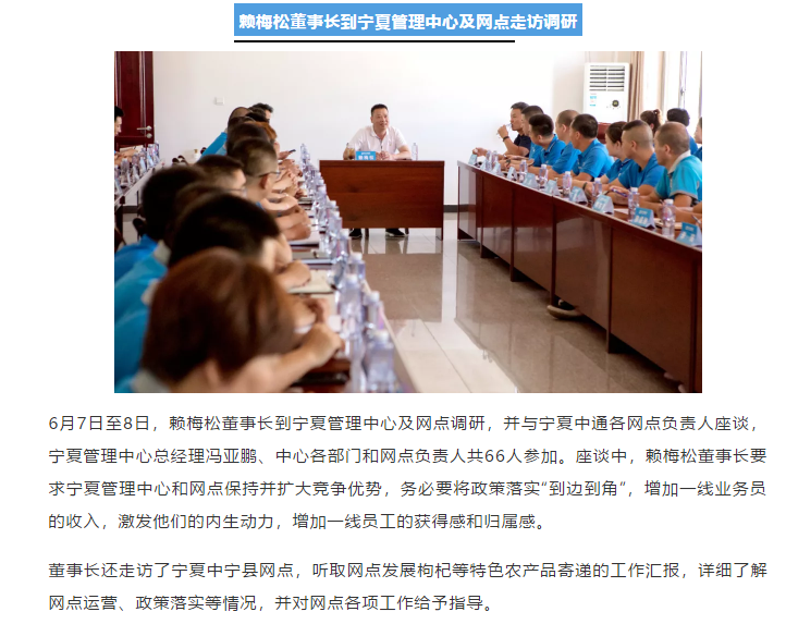 - 中通快遞董事長(zhǎng)賴(lài)梅松到寧夏管理中心及網(wǎng)點(diǎn)走訪調(diào)研