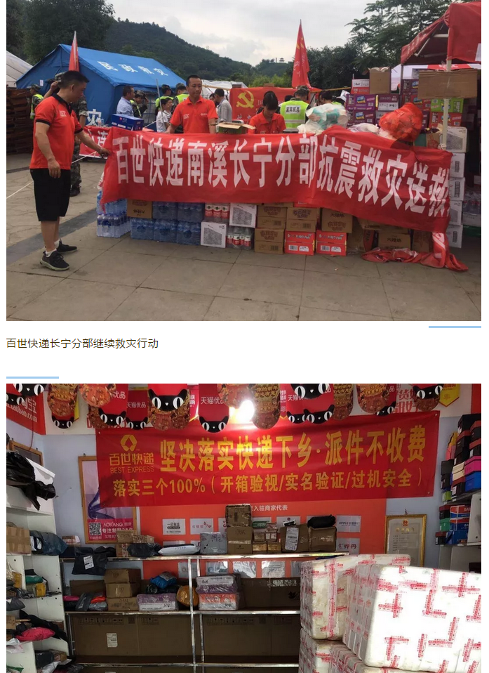 馳援繼續(xù)!百世快遞開通震區(qū)援助綠色通道 多地正常派件