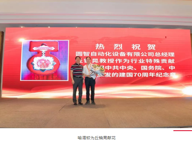 9月25日舉行的圓通速遞2019年旺季保障工作會(huì)議,專(zhuān)門(mén)安排了一幕重頭戲:董事長(zhǎng)喻渭蛟邀請(qǐng)物流國(guó)家工程實(shí)驗(yàn)室旗下智能裝備部的丘鏡晃教授上臺(tái),向他獻(xiàn)上鮮花,代表全體圓通人向這位“慶祝中華人民共和國(guó)成立70周年”紀(jì)念章的獲得者表達(dá)崇高的敬意。紀(jì)念章在丘教授的胸前熠熠閃光,臺(tái)下的圓通人掌聲響起,經(jīng)久不息。