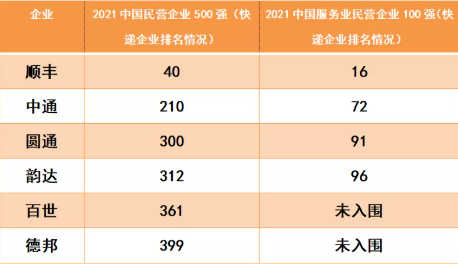 順豐 中通 圓通 韻達 百世 德邦入圍民企500強!