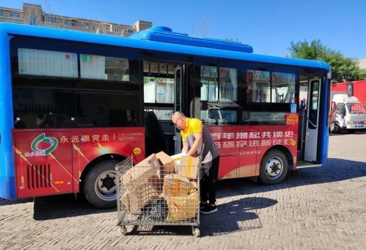 綠色新能源公交車捎帶快遞。
