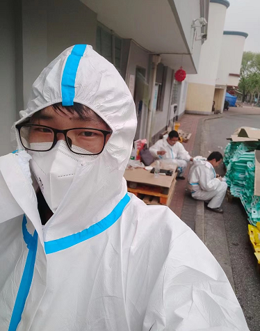 (跨越速運閔行金都點部跨越小哥疫情下工作照)