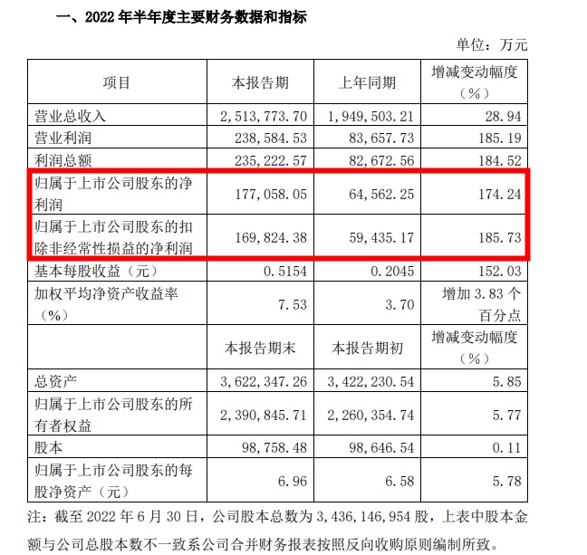 數(shù)據(jù)還顯示,2022年第二季度,公司實現(xiàn)歸屬于上市公司股東的凈利潤90,030.86