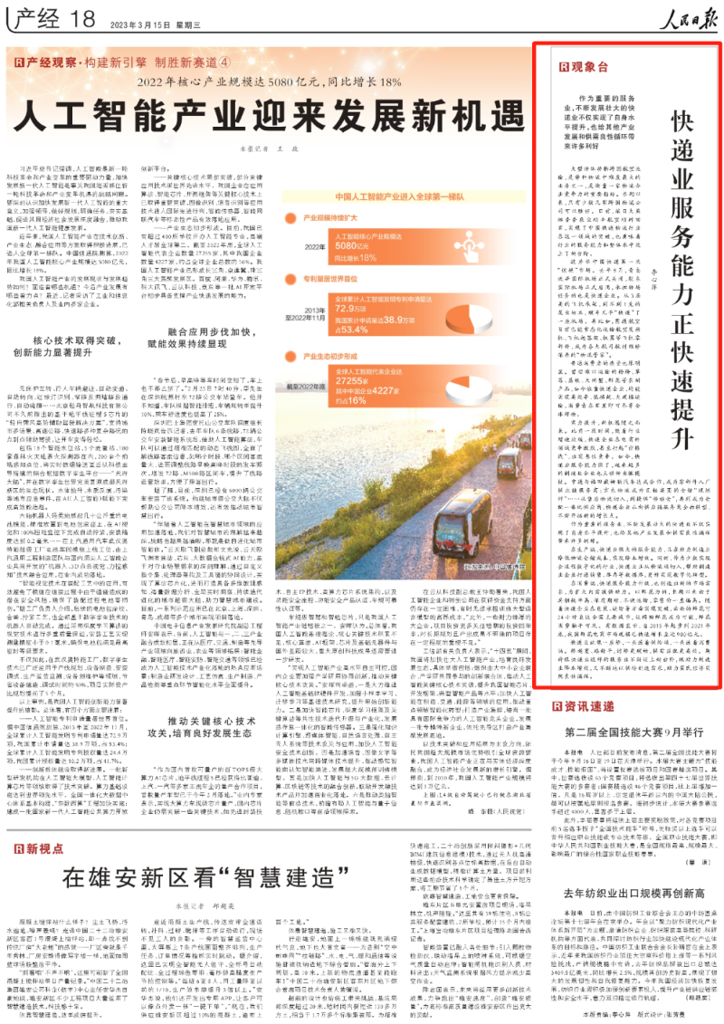 人民日?qǐng)?bào):快遞業(yè)服務(wù)能力正快速提升