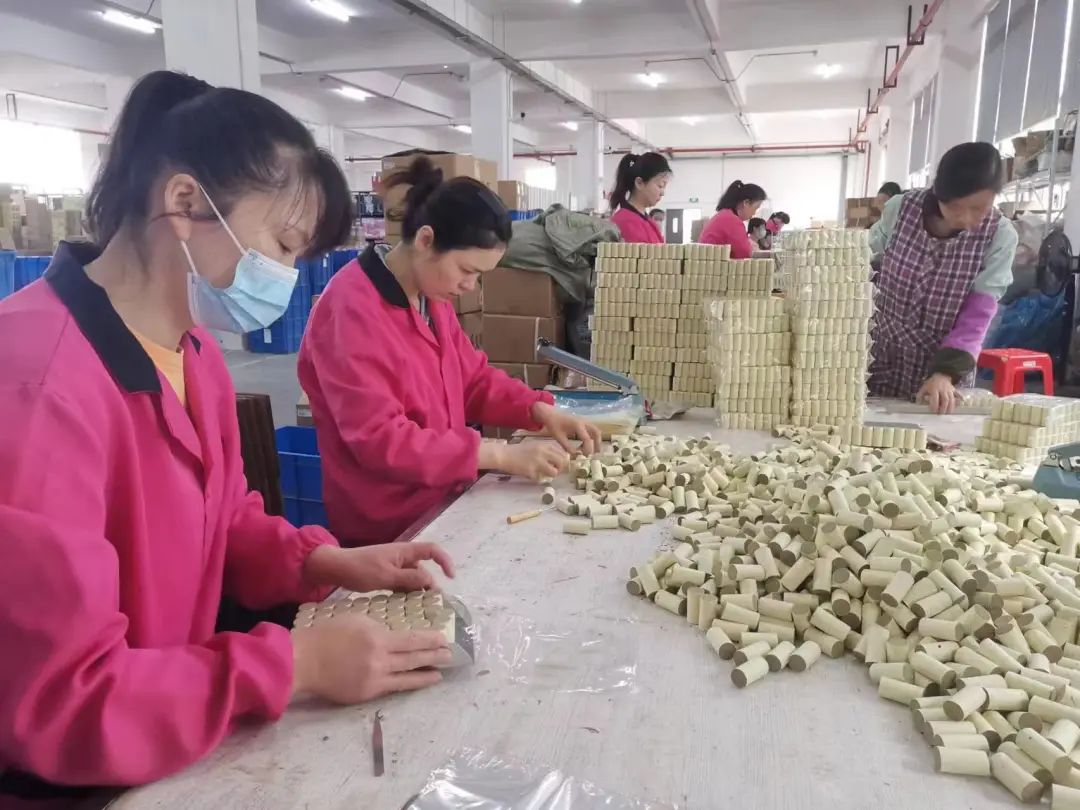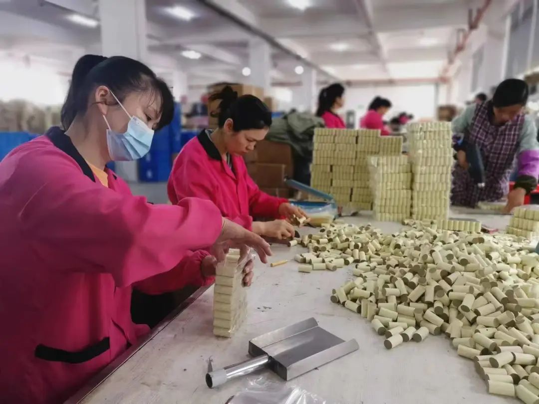 “我們這里家家種艾,全鎮(zhèn)種植面積1.5萬畝,年農(nóng)業(yè)產(chǎn)值在1800萬元左右。”張塝鎮(zhèn)黨委書記蔡寧介紹,該鎮(zhèn)已經(jīng)建立了一條完整的供應(yīng)鏈,包括種植、加工、包裝、直播、倉儲、快遞等6個(gè)方面。“在塔林村新開辦的工廠每年可增收20多萬元,每天從蘄北云倉發(fā)出的快件有8000~9000件?!辈虒幷f。