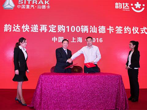 會(huì)上還進(jìn)行了韻達(dá)速遞與中國(guó)重汽集團(tuán)濟(jì)南商用車有限公司首批100輛汕德卡車的交車儀式。這是繼韻達(dá)速遞3月份引進(jìn)68臺(tái)豪沃系列車型后,又一次發(fā)力陸路運(yùn)輸舉措。在交車的同時(shí),韻達(dá)速遞與中國(guó)重汽集團(tuán)又簽署了再訂購(gòu)100輛汕德卡的合作意向。同時(shí),圓通、中通、百世快遞也與中國(guó)重汽集團(tuán)及上海安镕重汽汽車銷售有限公司共同簽署了合作協(xié)議。