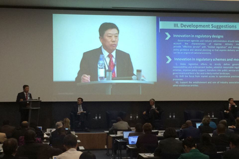 中國快遞協(xié)會(huì)會(huì)長(zhǎng)高宏峰在會(huì)上發(fā)表演講,他從中國快遞業(yè)的發(fā)展情況、發(fā)展趨勢(shì)及發(fā)展建議三個(gè)方面向各國代表介紹了蓬勃發(fā)展的中國快遞業(yè),闡明了郵政監(jiān)管三大體系的建立和完善,并就行業(yè)發(fā)展中的經(jīng)驗(yàn)與思考,同與會(huì)代表進(jìn)行了深入的交流與探討。