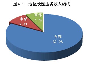 1-7月份,東、中、西部地區(qū)快遞業(yè)務(wù)收入的比重分別為82.9%、9.4%和7.7%,業(yè)務(wù)量比重分別為81.8%、10.7%和7.5%。與去年同期相比,東部地區(qū)快遞業(yè)務(wù)收入比重下降了0.2個(gè)百分點(diǎn),快遞業(yè)務(wù)量比重上升了0.8個(gè)百分點(diǎn);中部地區(qū)快遞業(yè)務(wù)收入比重上升了0.2個(gè)百分點(diǎn),快遞業(yè)務(wù)量比重下降了0.4個(gè)百分點(diǎn);西部地區(qū)快遞業(yè)務(wù)收入比重持平,快遞業(yè)務(wù)量比重下降了0.4個(gè)百分點(diǎn)。