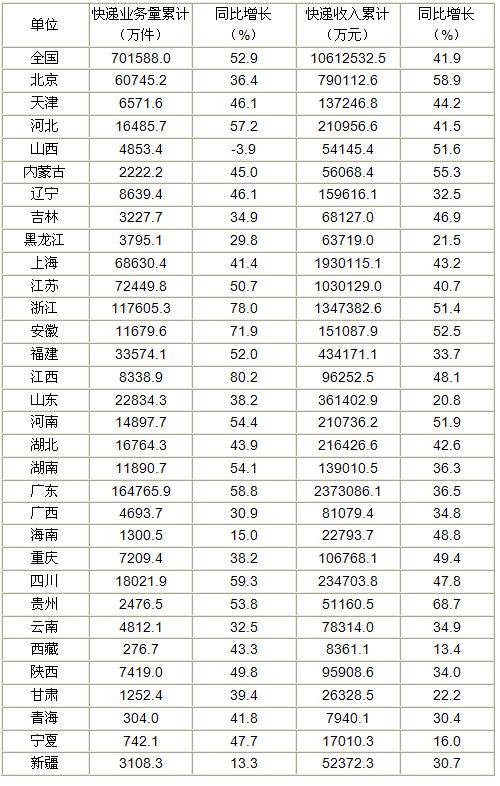 分省規(guī)模以上快遞服務(wù)企業(yè)業(yè)務(wù)量和業(yè)務(wù)收入情況表