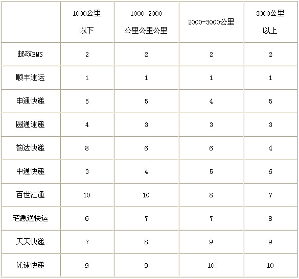 表2:品牌企業(yè)分里程時限排名: