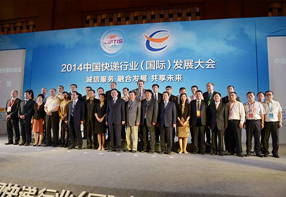 5月30日,2014中國快遞行業(yè)(國際)發(fā)展大會在京召開。本次大會作為第三屆京交會重要內(nèi)容之一,以“誠信服務、融合發(fā)展、共享未來”為主題,舉辦了主題演講和高峰對話,進行了中國快遞服務戰(zhàn)略合作簽約,簽約額超500億元,多項合作對促進快遞業(yè)與上下游行業(yè)融合發(fā)展、中國快遞走向世界將起到重要的推動作用。國家郵政局局長馬軍勝、北京市副市長程紅等出席見證簽約儀式。國家郵政局副局長劉君為大會開幕致辭,中國快遞協(xié)會會長高宏峰做閉幕講話。