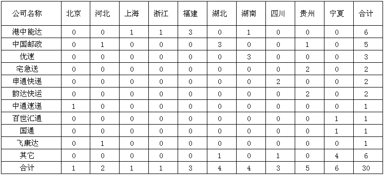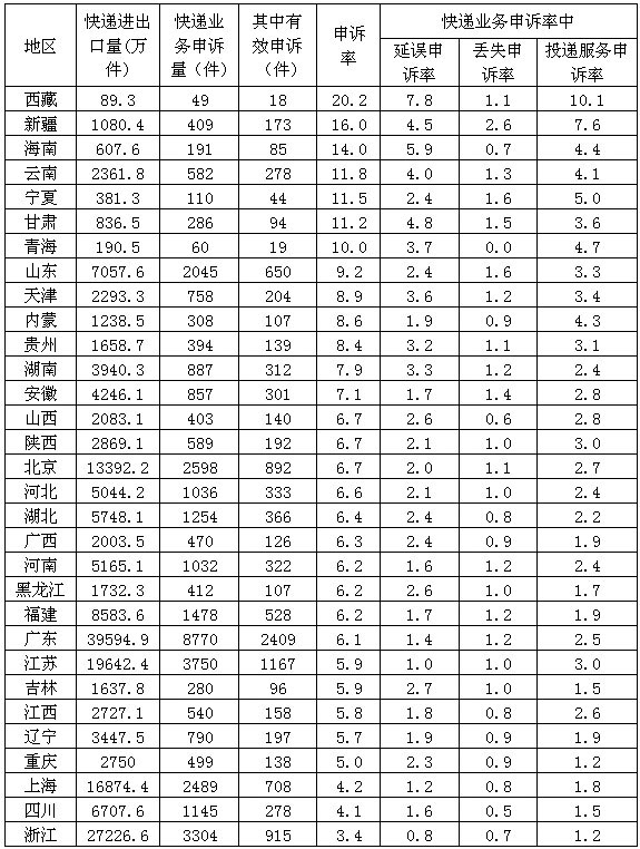 (二)消費者對快遞企業(yè)申訴情況