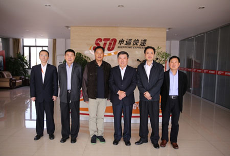 上海郵政管理局曾軍山局長、申通陳德軍董事長陪同高宏峰會長、李恵德常務(wù)副會長參觀了申通上海轉(zhuǎn)運中心。