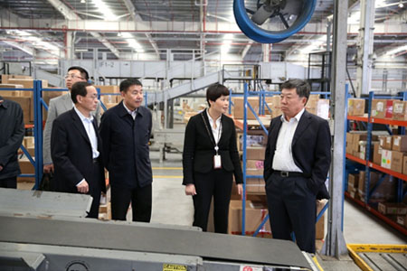 上海市郵政管理局曾軍山局長、UPS上海區(qū)經(jīng)理吳雷音、華東區(qū)總經(jīng)理袁明思陪同高宏峰會長、李恵德常務(wù)副會長進(jìn)行參觀。