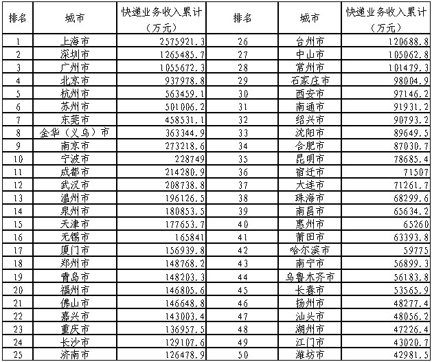 分省規(guī)模以上快遞服務(wù)企業(yè)業(yè)務(wù)量和業(yè)務(wù)收入情況表