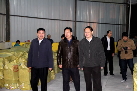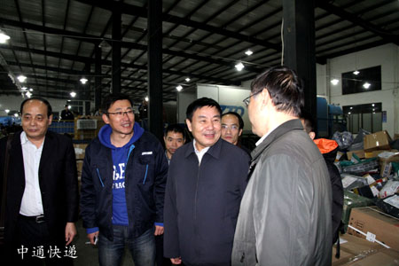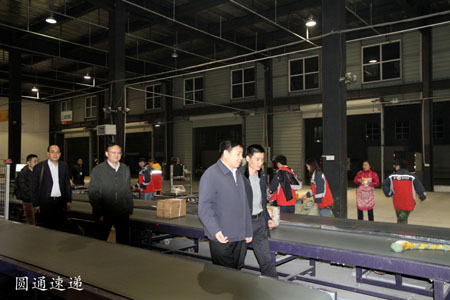 督導(dǎo)組到達(dá)成都后,在四川省郵政管理局局長(zhǎng)戚蘭州、副局長(zhǎng)張生泰的陪同下,先后走訪了郵政速遞物流、順豐速運(yùn)、申通快遞、圓通速遞、韻達(dá)快遞、中通快遞、百世匯通等7家快遞公司的轉(zhuǎn)運(yùn)中心。隨著“雙11”業(yè)務(wù)高峰的到來(lái),各快遞公司的快件量明顯增長(zhǎng)。雖已深夜,但各家快遞公司的轉(zhuǎn)運(yùn)中心依然燈火通明,數(shù)百名員工圍繞著循環(huán)運(yùn)轉(zhuǎn)的流水線緊張有序的忙碌著。李惠德詳細(xì)詢問(wèn)了各公司在“雙11”期間業(yè)務(wù)量的增長(zhǎng)數(shù)據(jù),實(shí)地查看了人員、設(shè)備等保障情況,并代表馬軍勝局長(zhǎng)向工作在生產(chǎn)一線的員工表示慰問(wèn)。