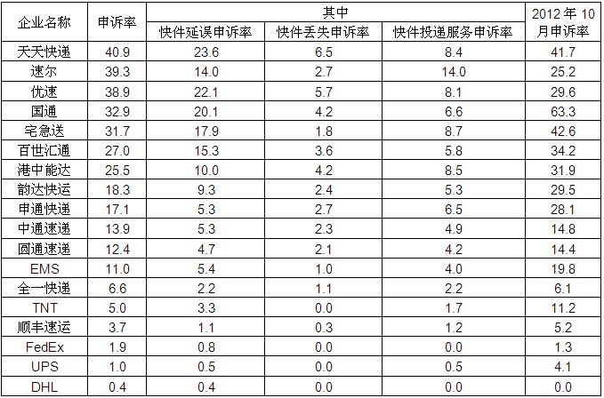 2013年11月18日來源:一、郵政服務(wù)申訴情況
