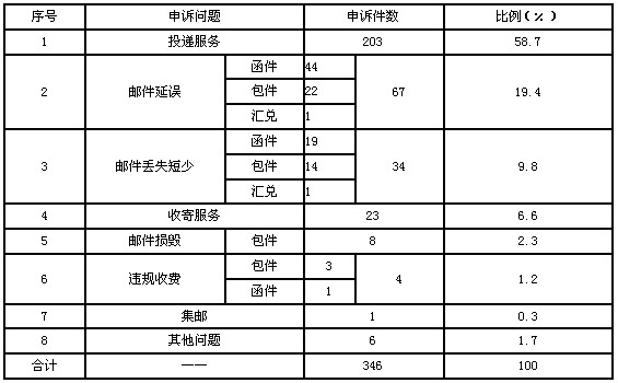 2013年06月17日來源:一、郵政服務(wù)申訴情況