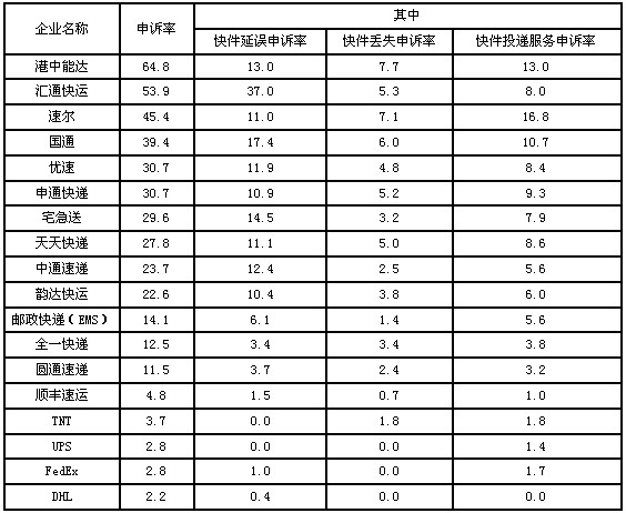 5月,消費(fèi)者對(duì)47家快遞企業(yè)進(jìn)行了有效申訴,全國快遞業(yè)務(wù)平均百萬件快件有效申訴19件。