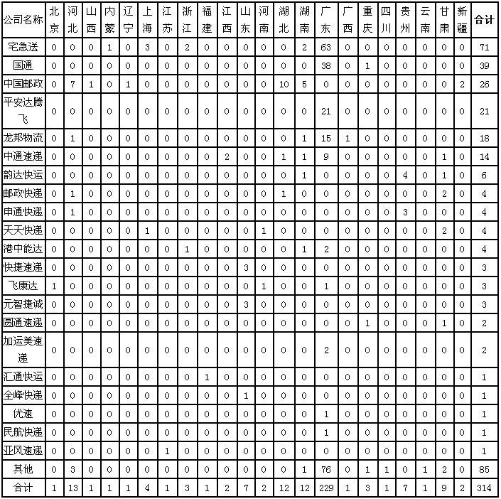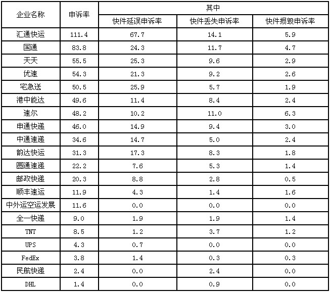 (二)消費(fèi)者對(duì)快遞企業(yè)申訴情況