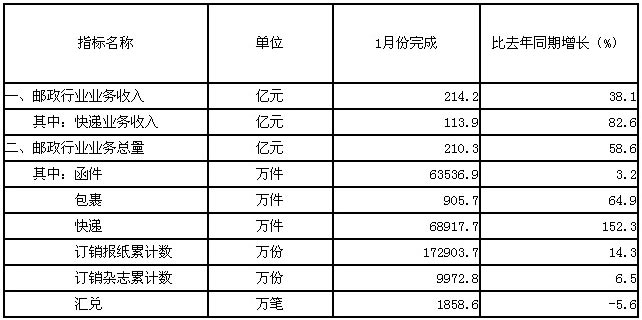 國家郵政局公布2013年1月份郵政行業(yè)運(yùn)行情況