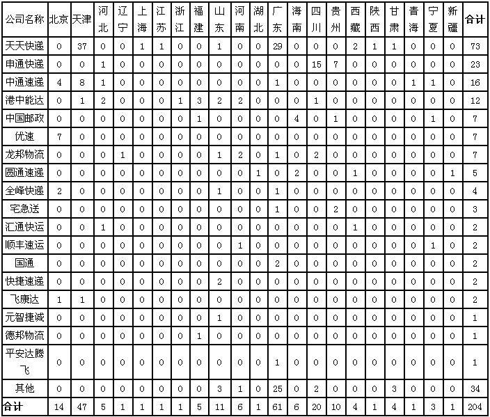 二、快遞業(yè)務(wù)申訴情況