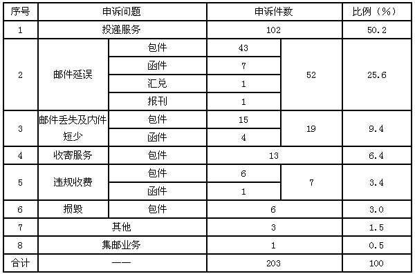 2012年12月18日來源:一、郵政服務(wù)申訴情況