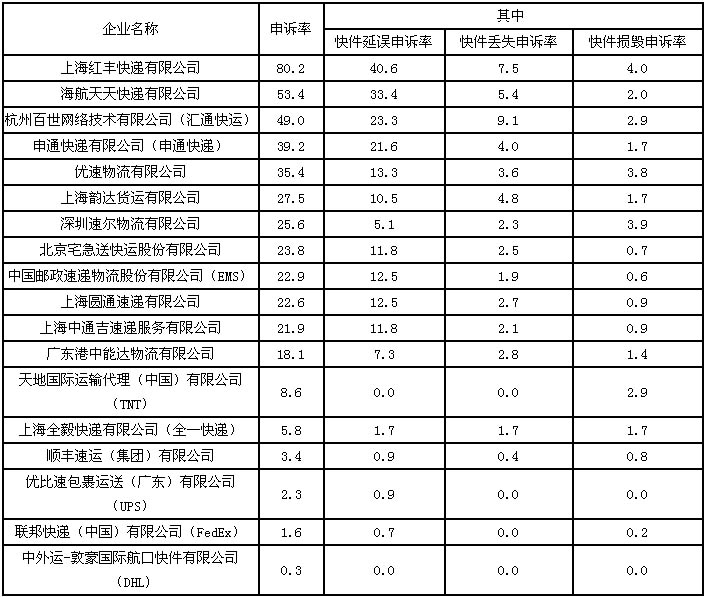?。ǘ┫M(fèi)者對(duì)快遞企業(yè)申訴情況