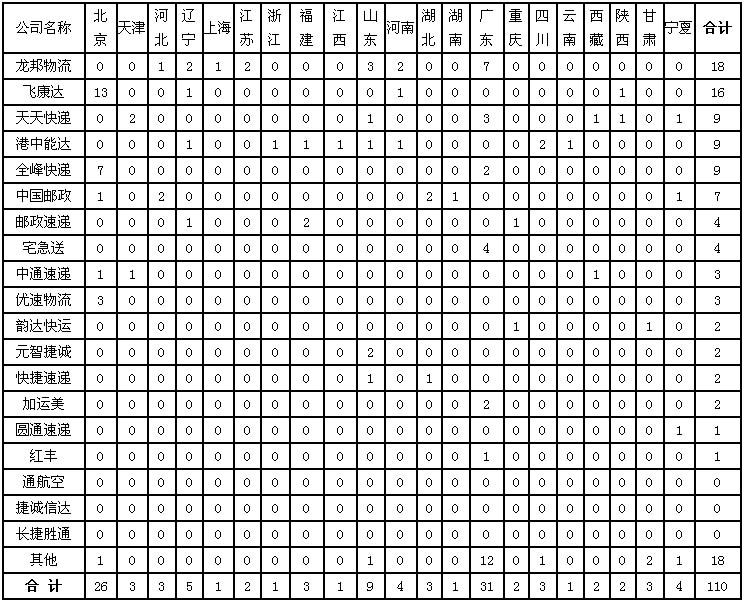 國家郵政局關(guān)于2012年11月郵政業(yè)消費(fèi)者申訴情況的通告