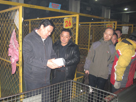 為了了解快遞企業(yè)的節(jié)前快遞服務(wù)情況,1月18日晚,由馬軍勝局長和蘇和副局長各帶一隊檢查組,在事先沒有通知企業(yè)的情況下,突擊檢查企業(yè)的服務(wù)運行情況,了解企業(yè)節(jié)前服務(wù)保障工作。