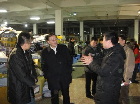 元月10日深夜,剛下飛機(jī)的國家郵政局馬軍勝局長不顧貴州高原還正下著特有的凍雨,在貴州省郵政管理局徐文葛局長的陪同下,趕往快遞企業(yè)中轉(zhuǎn)場地,調(diào)研和檢查正值旺季高峰的快遞服務(wù)工作。