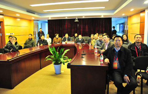 圖為參加2012年工作會(huì)的企業(yè)代表參觀國(guó)家郵政局安全監(jiān)控中心。