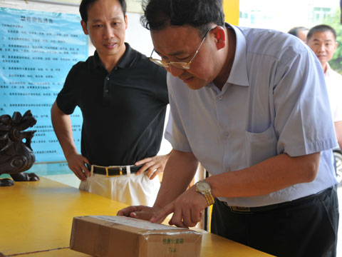圖為馬軍勝局長在東興市申通快遞公司網(wǎng)點(diǎn)考察。