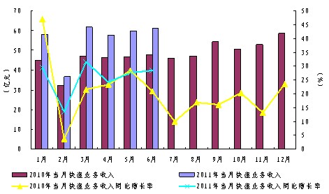 6月份,全行業(yè)業(yè)務(wù)總量完成140億元,同比增長27.8%;實現(xiàn)業(yè)務(wù)收入133.5億元,同比增長13.7%。