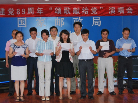 7月1日,國家郵政局舉辦了慶祝中國共產(chǎn)黨成立89周年“頌歌獻(xiàn)給黨”演唱會(huì)。演唱會(huì)上,大家滿懷深情用嘹亮的歌聲,抒發(fā)了對偉大的中國共產(chǎn)黨的熱愛之情,歌唱偉大的祖國偉大的黨,歌唱美好新生活。