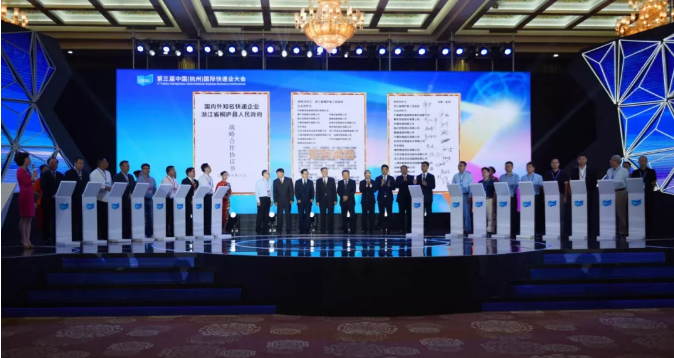 在大會(huì)的簽約儀式上,中國郵政速遞物流、順豐、申通、韻達(dá)、中通、圓通、百世、宅急送、德邦、菜鳥、京東物流等國內(nèi)知名快遞物流企業(yè)與桐廬縣人民政府簽訂戰(zhàn)略合作框架協(xié)議。根據(jù)協(xié)議,桐廬縣政府與各企業(yè)合作方將在人才、技術(shù)、項(xiàng)目等方面展開合作。同時(shí),申通國際也與DIRECT LINK(捷遞環(huán)球)簽訂了戰(zhàn)略合作協(xié)議。