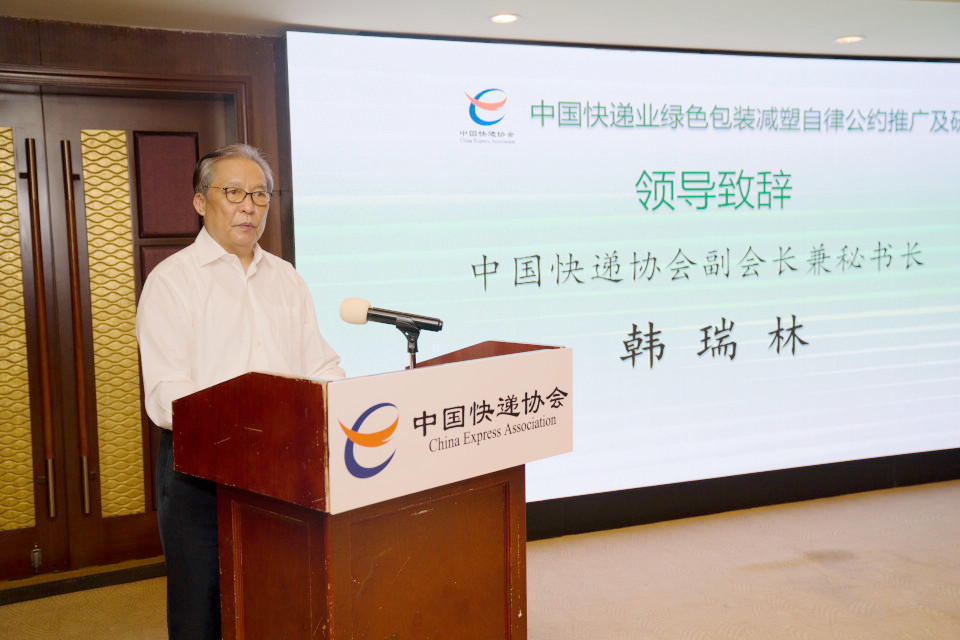 當天,由中國快遞協(xié)會主辦,中國快遞協(xié)會綠色環(huán)保專業(yè)委員會承辦的《中國快遞業(yè)綠色包裝減塑自律公約》推廣及研討會在京召開。韓瑞林在會上表示,《自律公約》既是簽約會員單位自身要遵守的承諾,也是中國快遞協(xié)會向全行業(yè)、全社會發(fā)出的動員和號召。中國快遞協(xié)會愿意與政府部門、會員企業(yè)、各友好協(xié)會和公益組織一起攜手合作、共同奮斗,為實施快遞包裝“綠色革命”,推進中國快遞業(yè)生態(tài)環(huán)保事業(yè)做出新的貢獻。