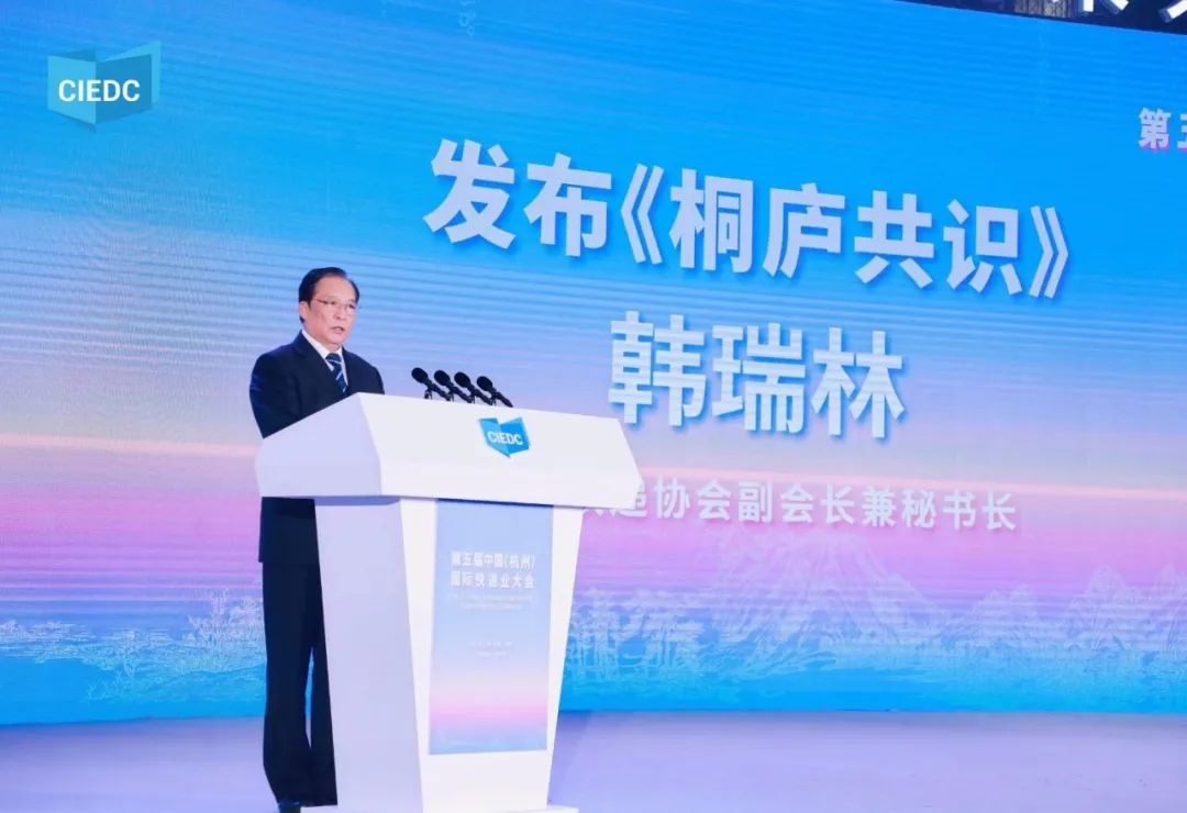 閉幕儀式上,中國快遞協(xié)會副會長兼秘書長韓瑞林發(fā)布了《桐廬共識》。為了在高質(zhì)量發(fā)展新征程上繼續(xù)破浪前行,在融入新發(fā)展格局上展現(xiàn)更大作為,快遞業(yè)將在創(chuàng)新驅(qū)動中找到發(fā)展新動能,在服務(wù)提質(zhì)中找到發(fā)展新節(jié)奏,在“快遞出?!敝欣L出發(fā)展新圖景,在協(xié)調(diào)發(fā)展中探尋發(fā)展新趨勢,在快遞員權(quán)益保障中展現(xiàn)行業(yè)新面貌。