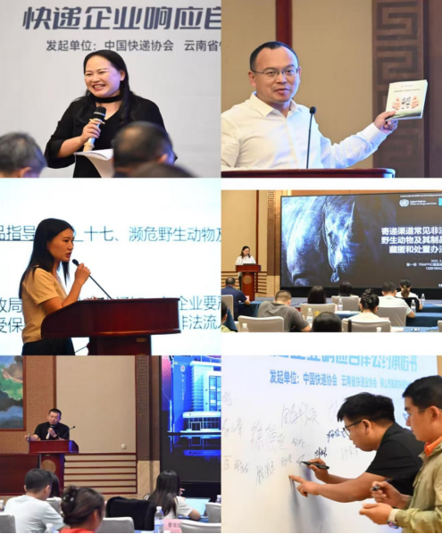 本次會議以“守護生物多樣性,拒絕非法寄遞”為主題,由 TRAFFIC 中國區(qū)首席代表徐玲主持。會上,來自昆明海關(guān)緝私局、中國野生動物保護協(xié)會、中國快遞協(xié)會、TRAFFIC 等單位的專家,就海關(guān)查驗相關(guān)案例、中國野生動物保護最新態(tài)勢及管理政策、快遞業(yè)野生動物保護相關(guān)法律法規(guī)、常見非法野生動物及其制品的藏匿和處置辦法、活體動物寄遞處置方法等進行了詳細分析與講解。來自云南順豐和云南郵政的企業(yè)代表分別就防止非法野生動物及其制品流入寄遞渠道的工作實踐進行了分享交流。企業(yè)代表還簽署了《快遞企業(yè)響應(yīng)自律公約承諾書》。會議注重實效,根據(jù)專家授課內(nèi)容設(shè)置了現(xiàn)場答題互動環(huán)節(jié),參會人員認真聽講,積極參與有獎知識問答,現(xiàn)場氣氛熱烈。