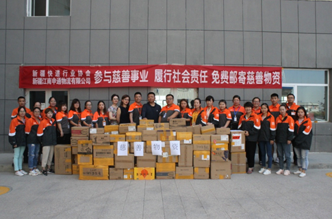 新疆江南申通物流有限公司攜手新疆快遞行業(yè)協(xié)會開展?“參與慈善事業(yè)?履行社會責任”免費郵寄慈善物資活動
