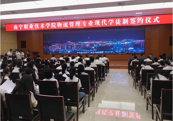 9月3日南寧職業(yè)技術(shù)學(xué)院物流管理專業(yè)現(xiàn)代學(xué)徒制開班儀式在學(xué)院會(huì)議中心二號(hào)報(bào)告廳舉行。