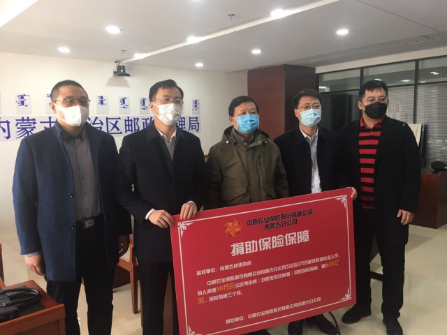 內(nèi)蒙古自治區(qū)郵政、快遞從業(yè)人員獲贈二萬份防護保險