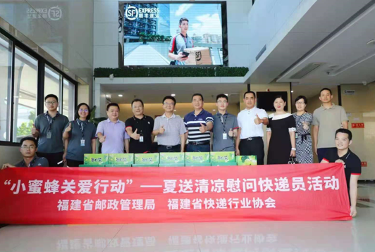 為認(rèn)真貫徹落實習(xí)近平總書記“七一”重要講話精神,福建省快遞行業(yè)協(xié)會開展了“關(guān)愛快遞小哥 夏日高溫送清涼”活動。