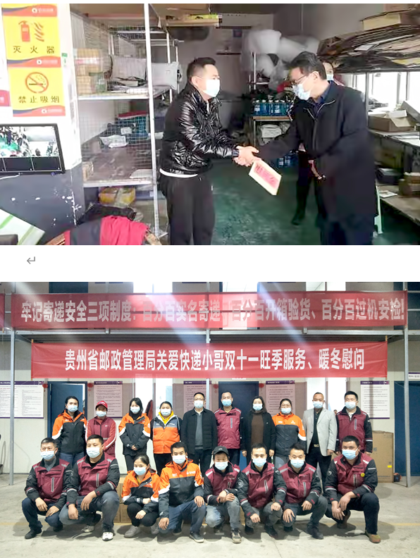雙十一期間貴州省郵政管理局黨組書記、局長陳向東,黨組成員副局長楊文理,貴州省快遞協(xié)會秘書長楊益平分成三個組深入到市州、縣、鄉(xiāng)鎮(zhèn)慰問郵政、快遞企業(yè)一線員工。