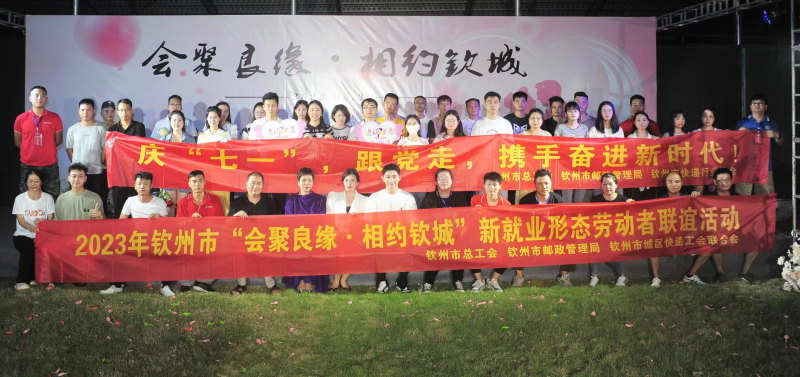 6月30日,欽州市快遞協(xié)會(huì)聯(lián)合市總工會(huì)、市郵政管理局等多家單位開(kāi)展“會(huì)聚良緣,相約欽城”聯(lián)誼活動(dòng)。為快遞行業(yè)新就業(yè)形態(tài)勞動(dòng)者尋找自己的緣分創(chuàng)造條件。