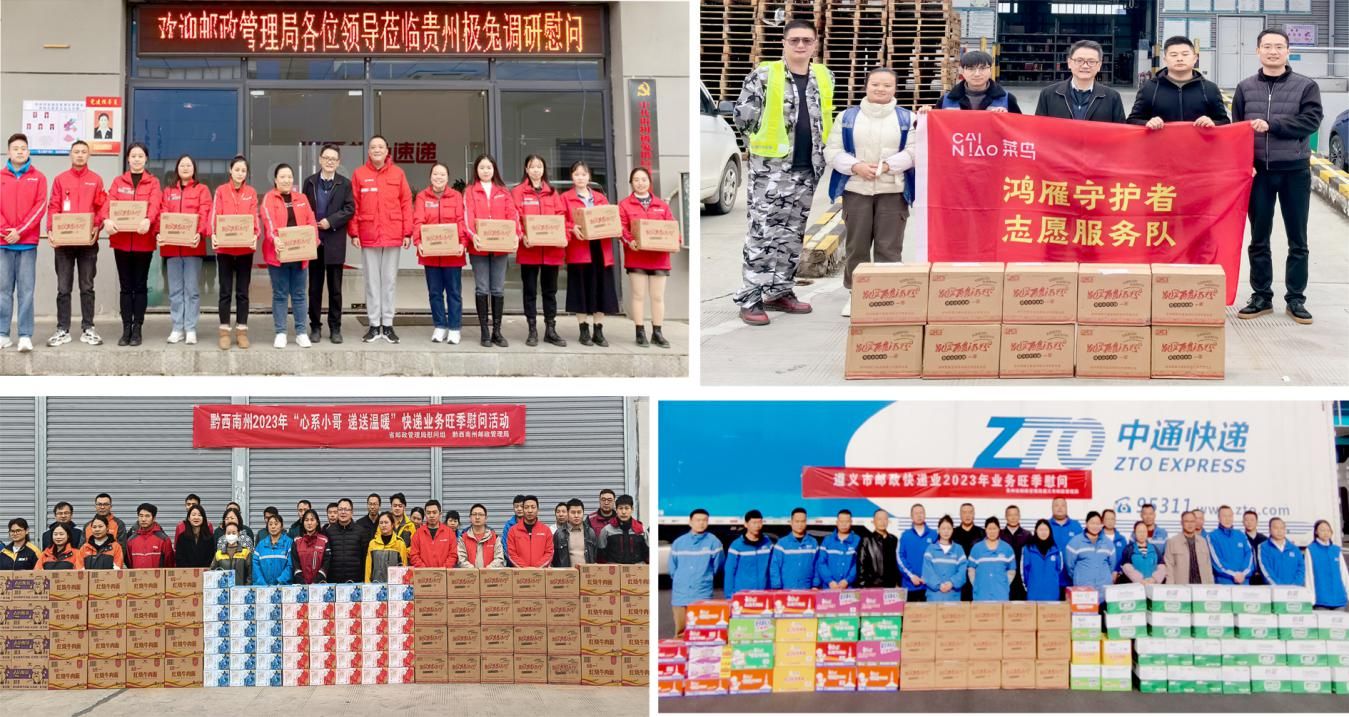 2023年11月21日來源:貴州省快遞協(xié)會為深入貫徹落實習近平總書記重要講話精神,按照國家郵政局、省局關于2023年快遞業(yè)務旺季服務保障工作的要求,以實現保暢通、保安全、保平穩(wěn)的目標。貴州省郵政管理局、貴州省快遞協(xié)會共同開展“雙11”旺季慰問活動。