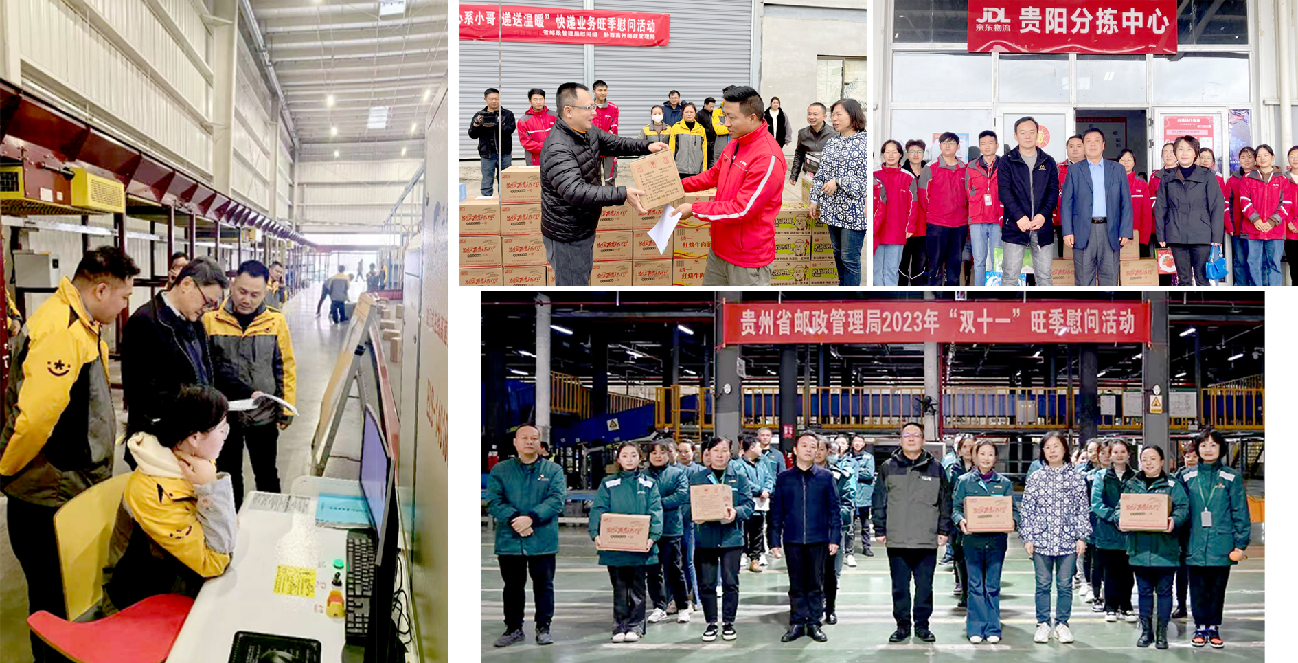 貴州省郵政管理局黨組書記、局長陳向東,黨組成員副局長楊文理,黨組成員紀檢組長李建斌、貴州省快遞協(xié)會秘書長楊益平分成四個組,在雙十一期間深入到郵政、快遞企業(yè)分撥中心、供配中心、末端網點及市、州慰問郵政、快遞一線員工。