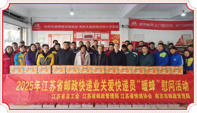1月15日,江蘇省快遞協(xié)會(huì)聯(lián)合省郵政管理局、省總工會(huì)啟動(dòng)2025年全省關(guān)心關(guān)愛(ài)快遞員“暖蜂行動(dòng)”并開(kāi)展首批集中慰問(wèn)活動(dòng)。省郵政管理局黨組書記、局長(zhǎng)蔣波,省總工會(huì)副主席臧鐵柱,省綜合交通運(yùn)輸學(xué)會(huì)副理事長(zhǎng)、快遞分會(huì)會(huì)長(zhǎng)張水芳一行深入京東南京成賢營(yíng)業(yè)部等地慰問(wèn)一線快遞從業(yè)人員。